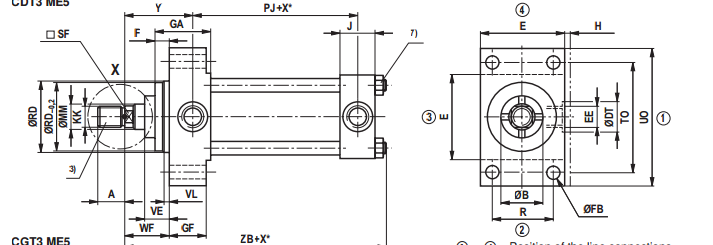 CDT3 / CGT3系列的气缸配有管道